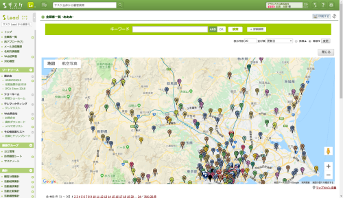 マッピングについては各リストに入り「検索結果一覧を地図上に表示する」をクリックすることでマピングされます。