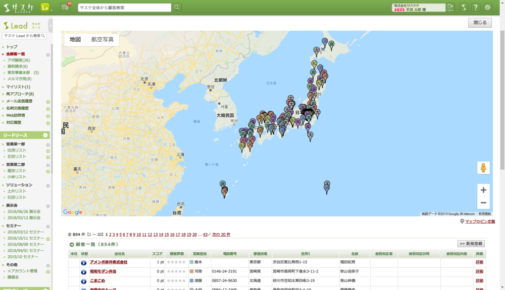 顧客一覧を開いた際にマッピングできる機能が追加されました。