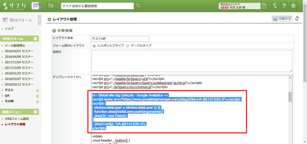 サスケにて設定(レイアウト管理編)