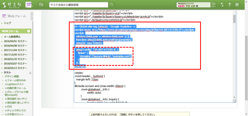 ※domainsですが、Webフォーム以外のクロスドメインを計測されている場合は、そちらのドメインも記入する必要性があります