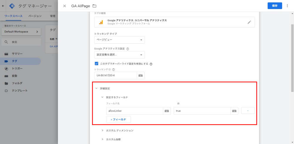 - フィールド名:allowLinker