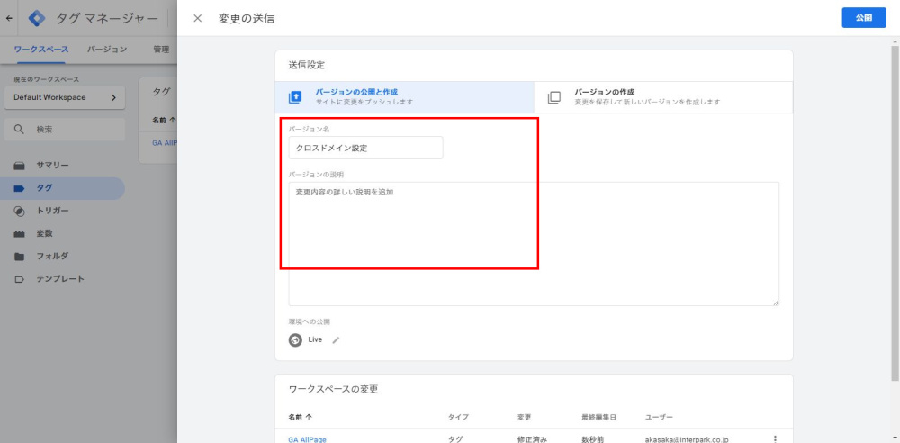 本記事では現在既に作成されているGoogleタグマネージャとGoogleアナリティクスの設定を変更し、クロスドメインに対応させていきます。
