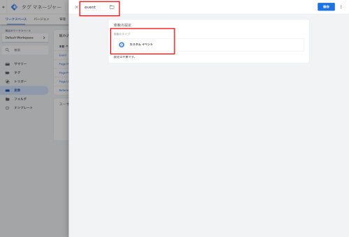 Google アナリティクス設定(任意の名称です。後ほどこの名称を利用します) - 変数のタイプ