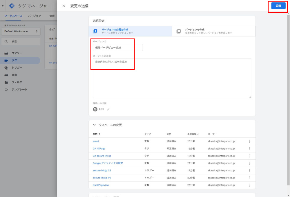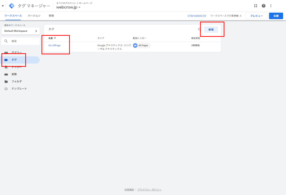 Googleタグマネージャの設定・公開