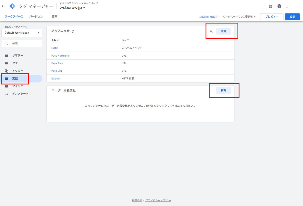 Googleタグマネージャの設定・変数