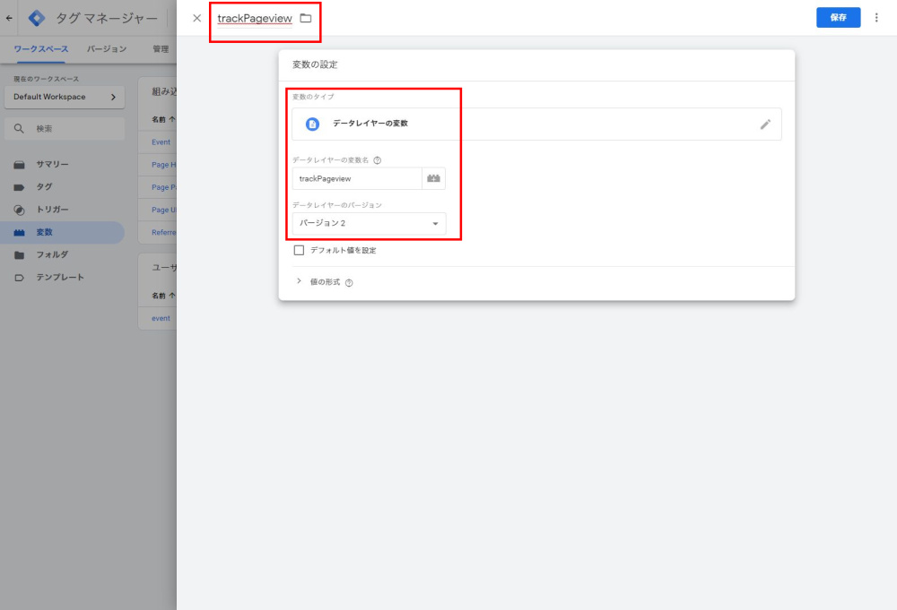 trackPageview(任意の名称です。後ほどこの名称を利用します) - 変数のタイプ