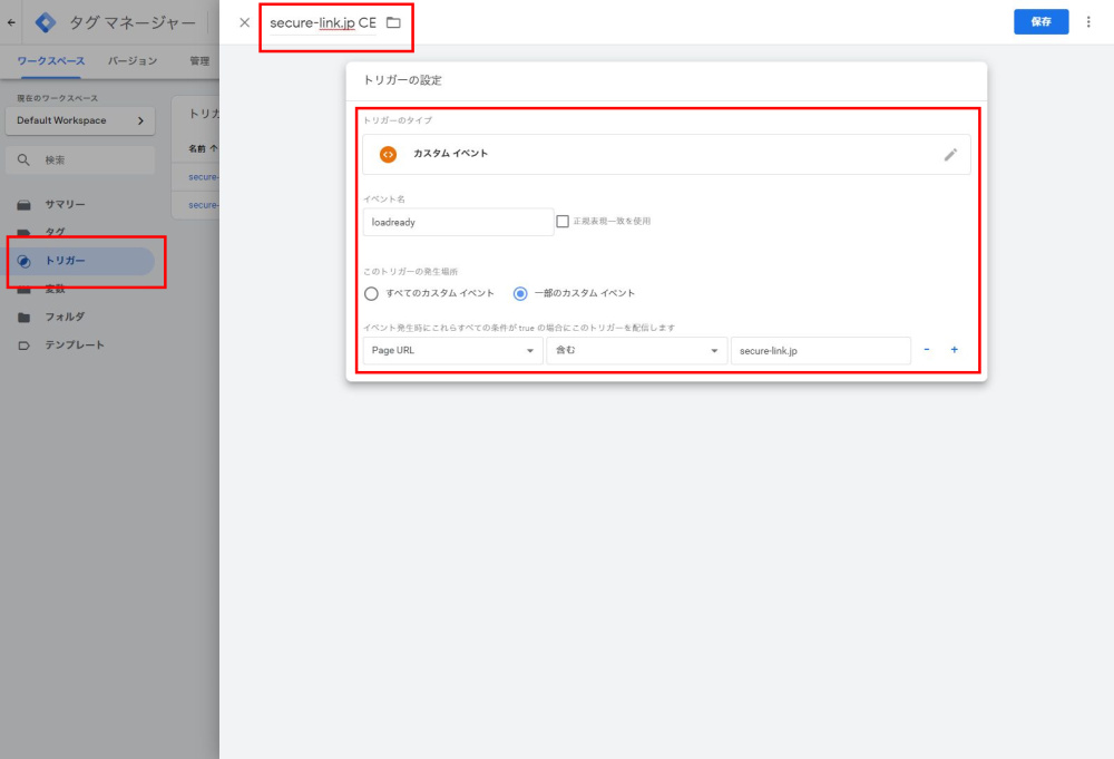 secure-link.jp CE(任意の名称です。後ほどこの名称を利用します) - トリガータイプ