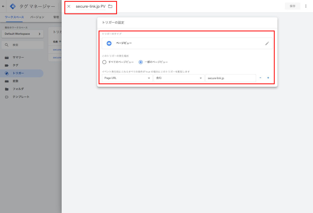secure-link.jp PV(任意の名称です。後ほどこの名称を利用します) - トリガータイプ