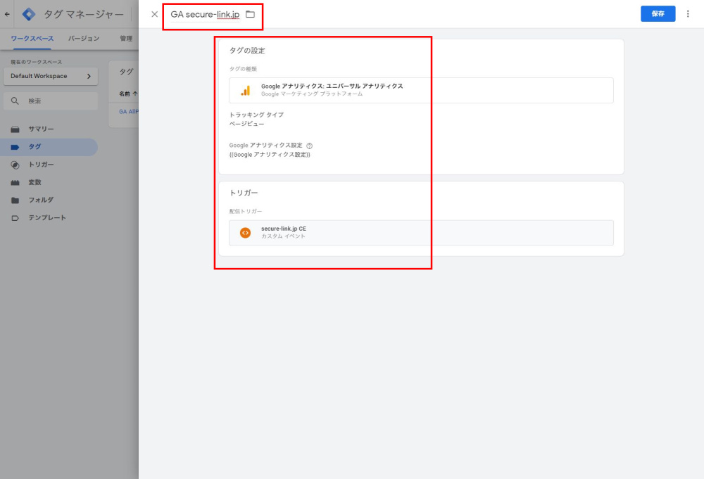 GA secure-link.jp(任意の名称です) - タグの種類