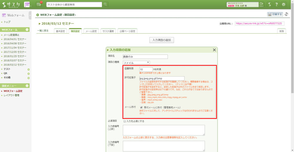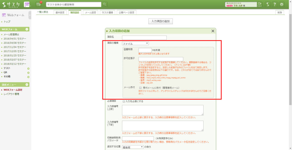 サスケWebフォームのアップデート【ファイルアップロード】機能