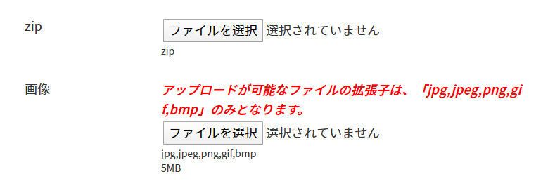 特定のファイル(例えば画像だけ、Wordファイルだけ、PDFだけ、などなど)をアップロードさせたい時にご活用下さい。