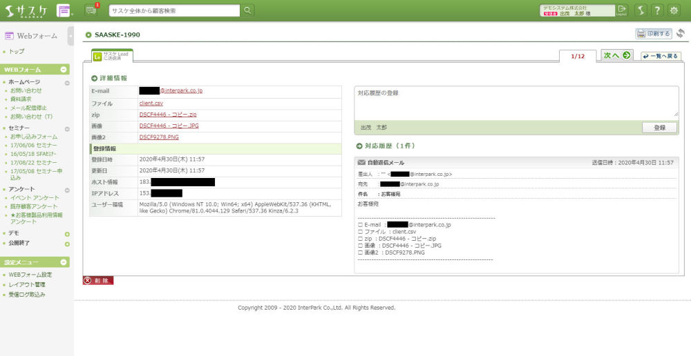 2020/05/15、Webフォームがアップデートしました。