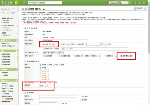 しかしながら、サスケLeadの「シナリオ」機能を活用することで、擬似的に反映させることができます!!