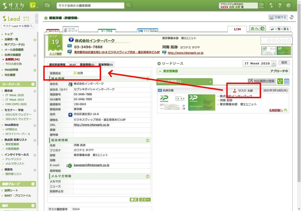 ※担当者毎に本設定をする必要性があるのでご留意下さい- 名刺交換日