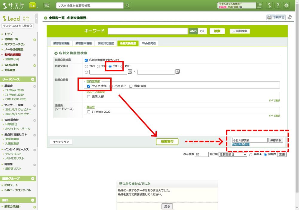 検索し終えましたら「検索条件の保存」を行い、今回の検索条件を保存しておきます。