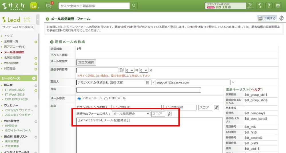 HTMLメールでWebフォームのリンクを埋め込むには