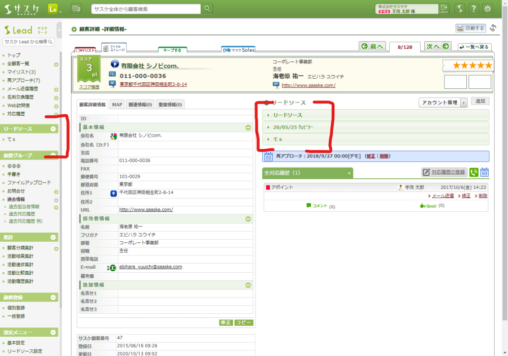 サスケLeadへリードソース、履歴グループの表示・非表示を設定できる機能が追加されました。