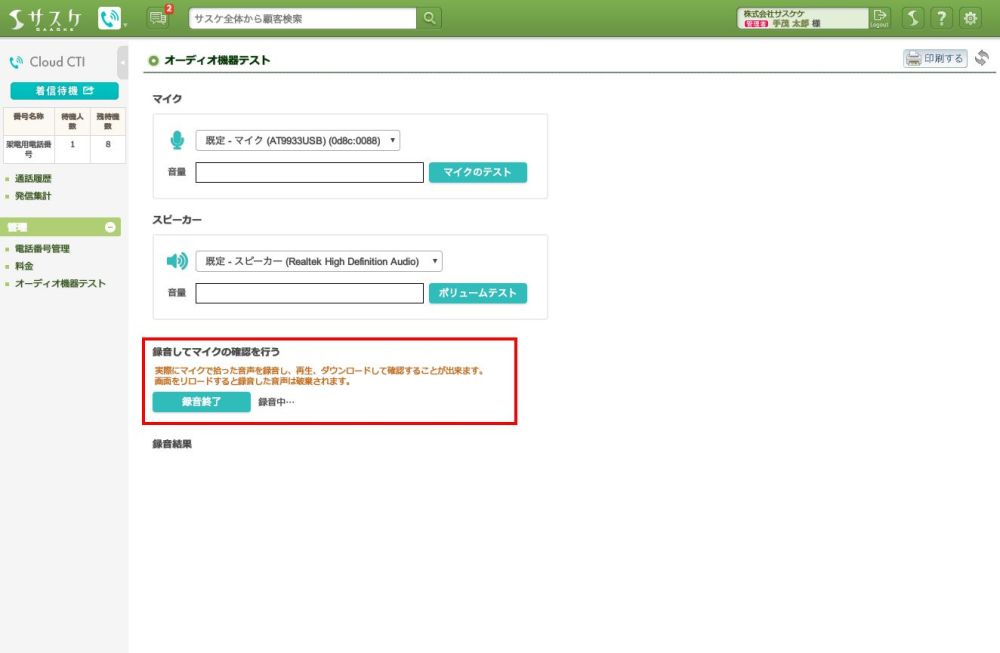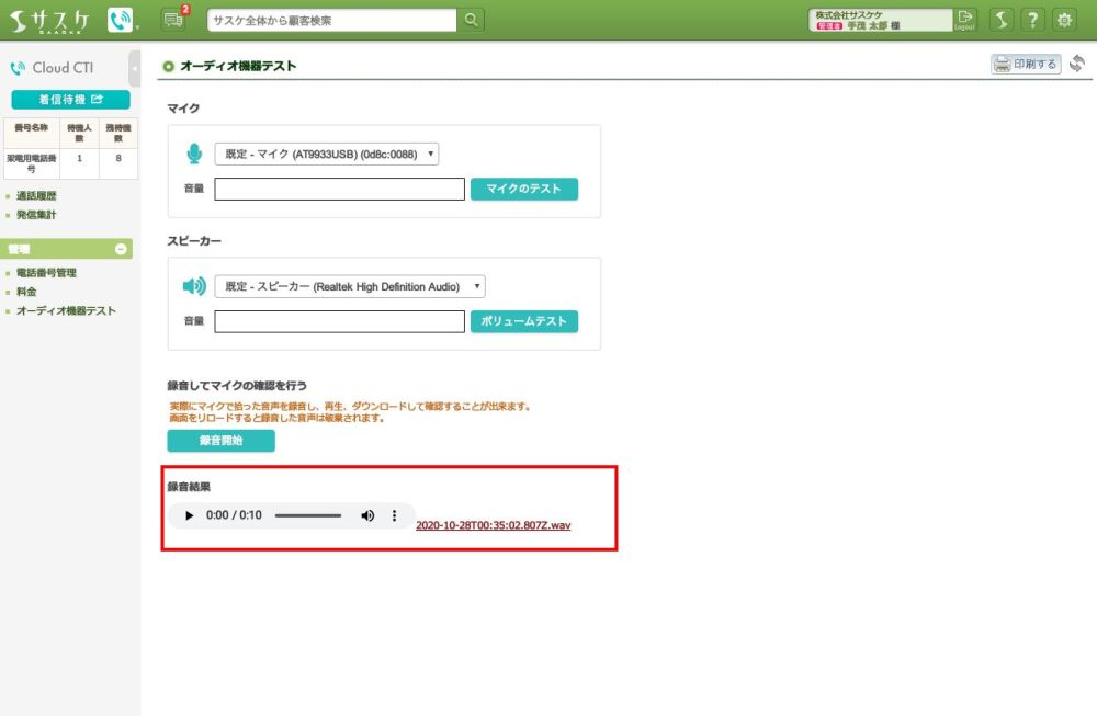 Cloud CTIのアップデート【「オーディオ機器テスト」機能】