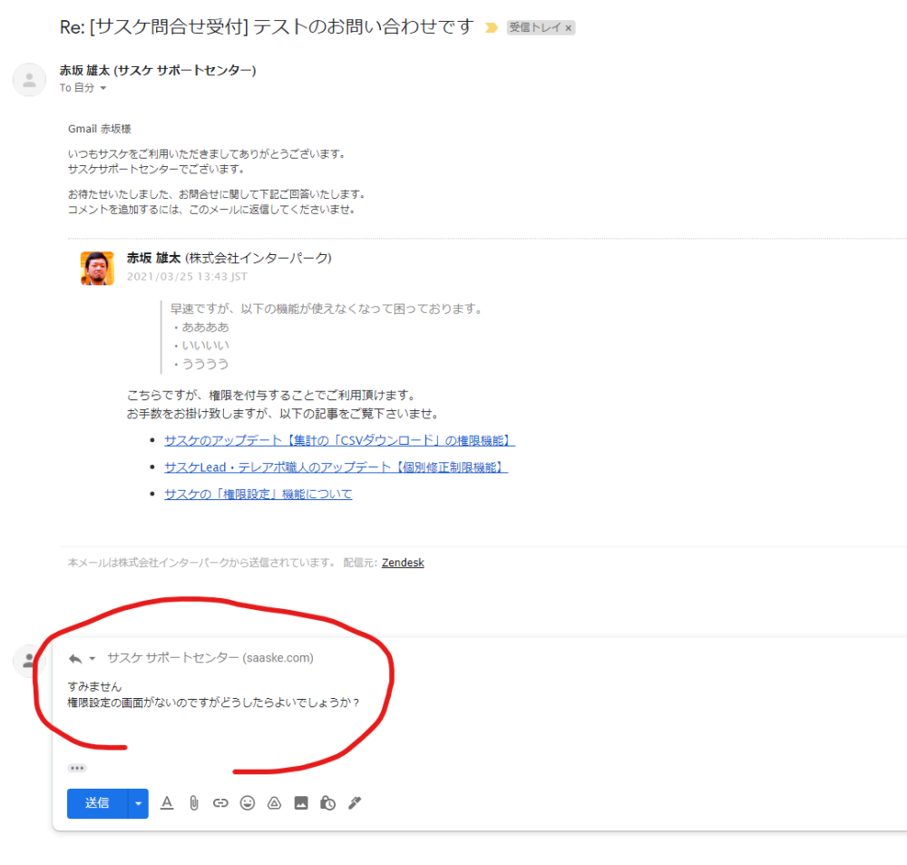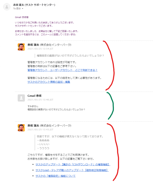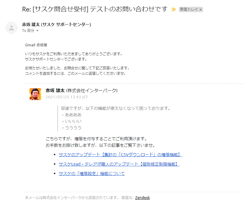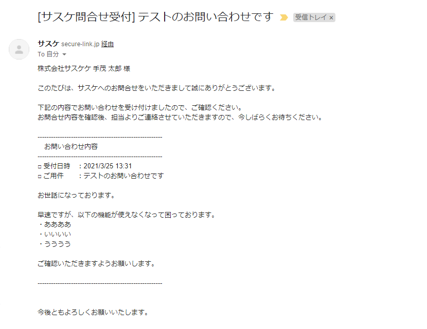 サスケの「お問い合わせ」の回答方法が変更します