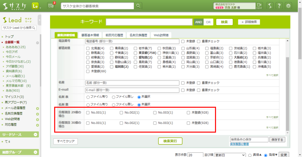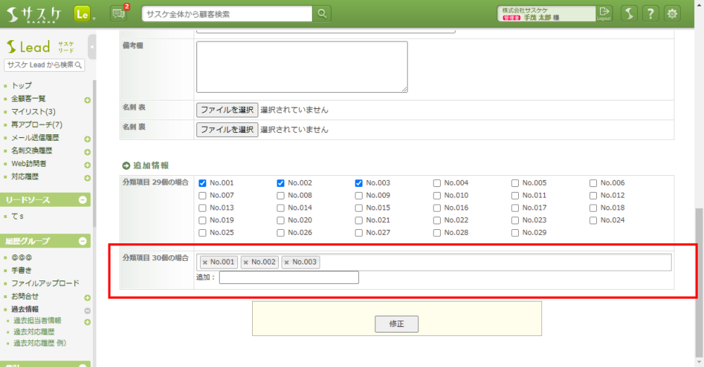 サスケLeadのチェックボックス項目が30件以上の場合、見やすくなるよう改修致しました。