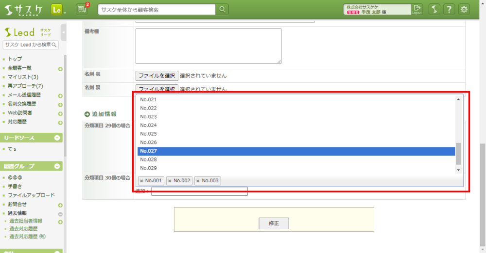 サスケLeadのアップデート【チェックボックス項目のプルダウン化機能】