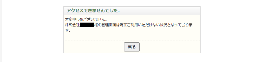 株式会社**様の管理画面は現在ご利用いただけない状況となっております。