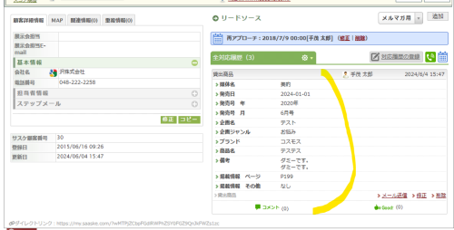 ③ 対応履歴ではなく、対応履歴の場所に『送信された情報』を登録したい