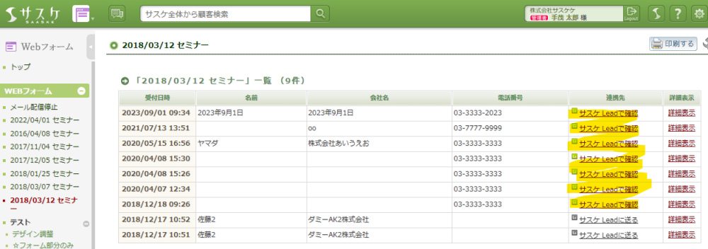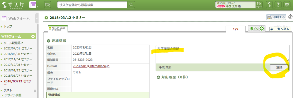 Webフォームに送信された顧客へ対応履歴を登録するには?