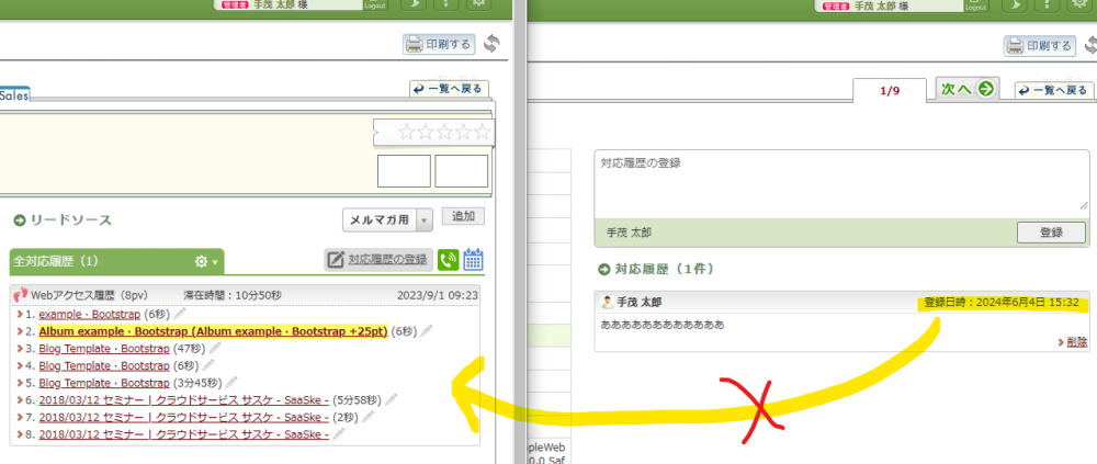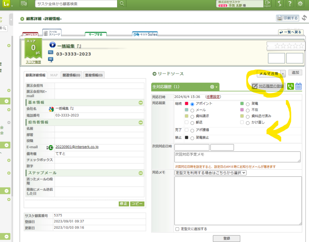 Webフォームで送信された顧客へ手動で対応履歴を登録する方法は2つございます。