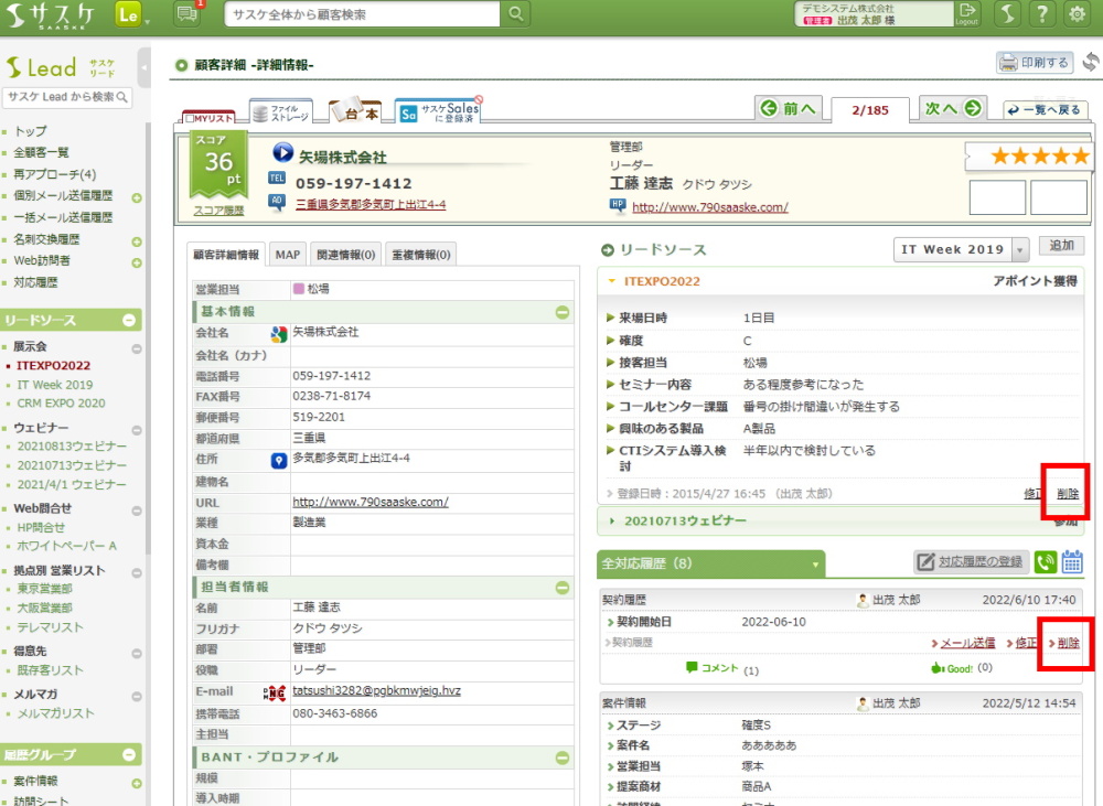 サスケLeadのアップデート【顧客に紐づくリードソース・履歴グループの一括削除機能】