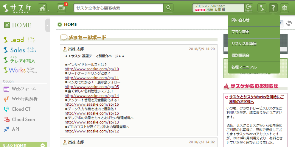 サスケの使い方・不具合のサポート連絡が変わりました