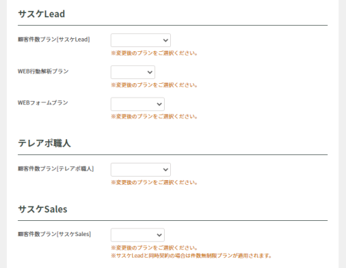 社内で稟議が降りておりプランアップもしくはプランダウンが確定している場合、こちらを選択してください。毎月のご請求に関わる箇所となりますのでご留意下さいませ。