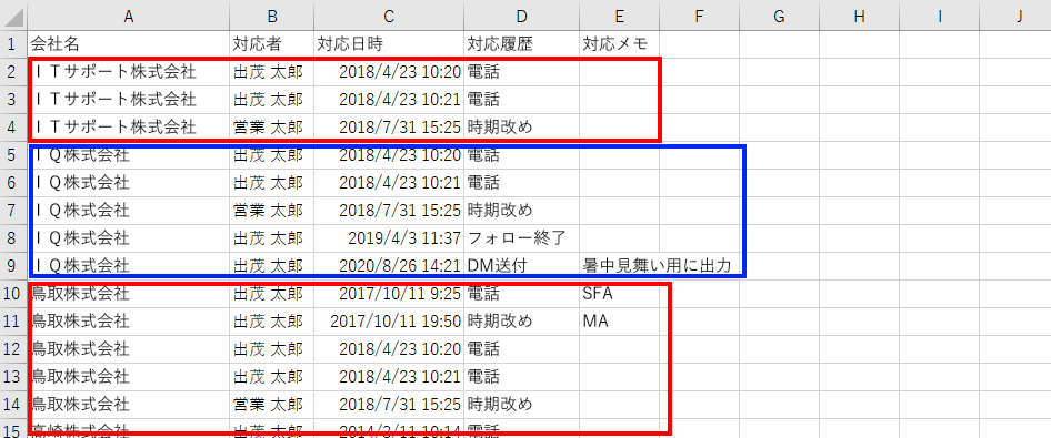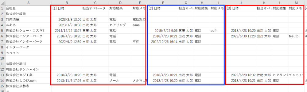 こちらを利用すると【1行につき、1対応履歴】をダウンロードできます。