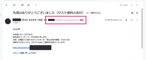- 送られてくるメールは以下の様な文章となります