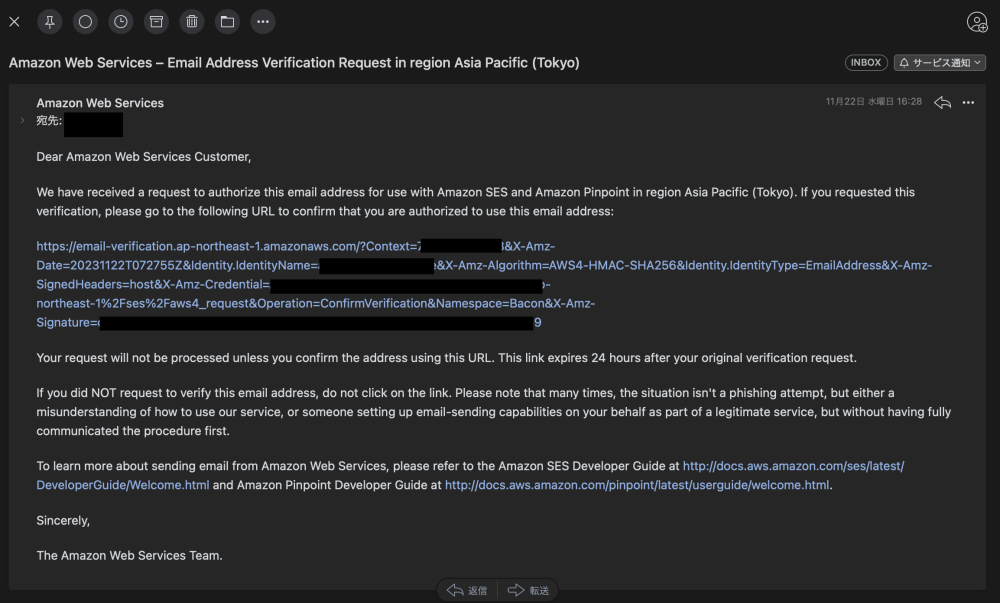 - (御社対応)SESの確認メールがメールアドレスごとに送信されるので、各々メール内のリンクをクリックしてください