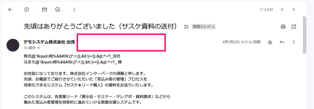 サスケから適当なGoogleのGmailアカウントへメールを送信してください。