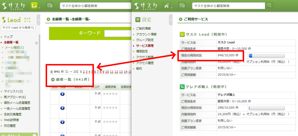 「ご利用サービス」と「全顧客一覧」の件数が異なる原因