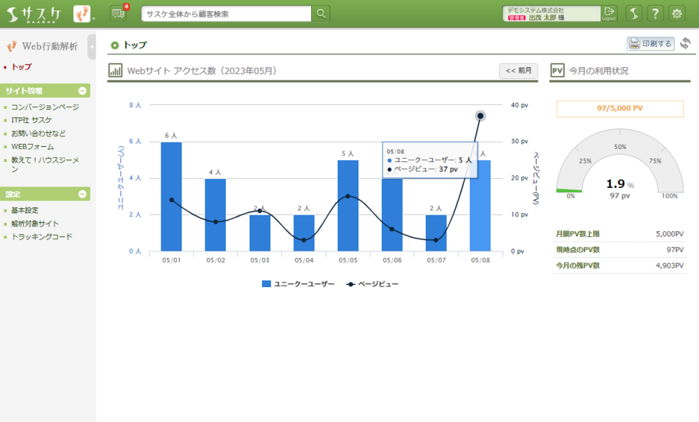 ※ユニークユーザーやページビューはCookieを保持させて特定する仕様となっております