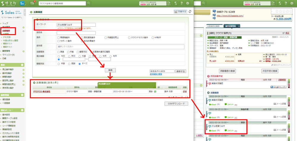 テレアポ職人では最後に残した通話メモのみ検索できます。