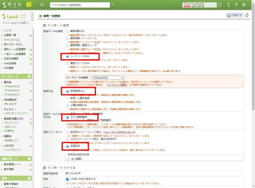 リードソースへのインポートする際の注意点です