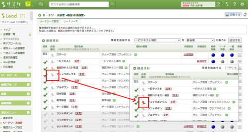 左メニュー「リードソース設定」もしくは「履歴グループ設定」に入り、「履歴項目設定」に入ります。