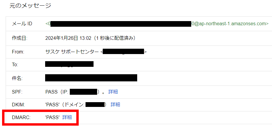 DMARCに対応させる前に、サスケから送信するメールアドレスを「Amazon SES」へ登録する必要がございます。詳しくはこちらの記事をご参考に、弊社までお問い合わせくださいませ。