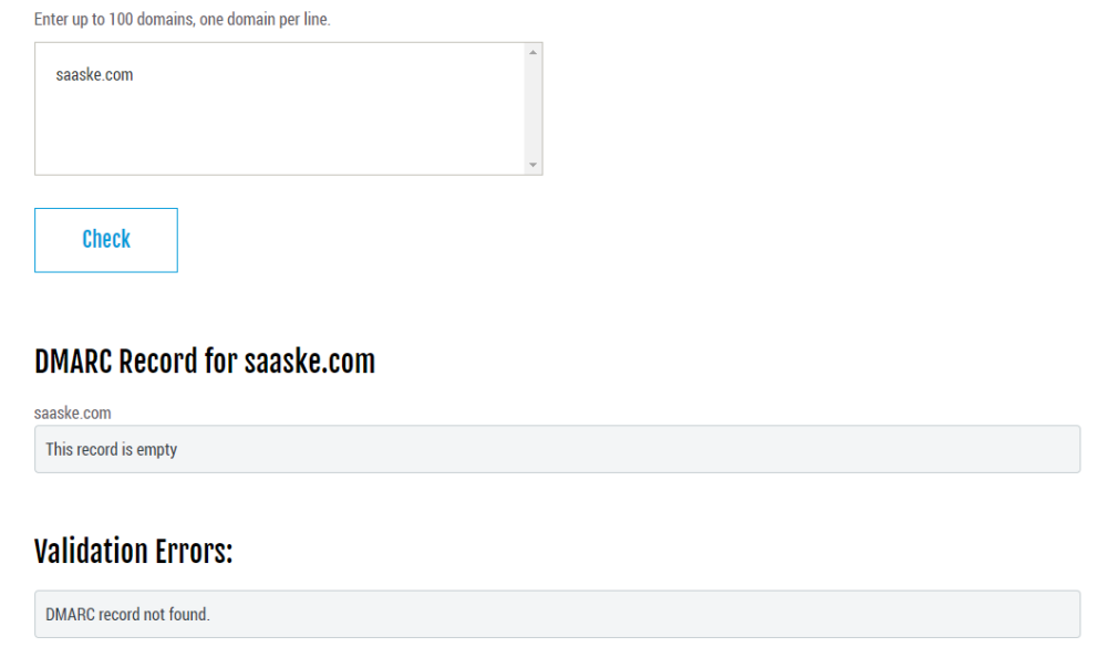 - 「Enter up to 100 domains, one domain per line.」 へドメインを記入し、「Check」ボタンをクリックします。