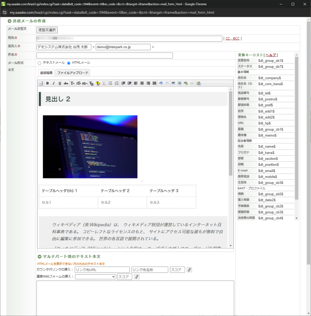 サスケLeadのアップデート【個別送信メールにて「HTMLメール」送信機能】