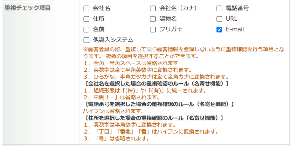 また顧客だけでなく「顧客担当者の重複チェック項目」も存在します。