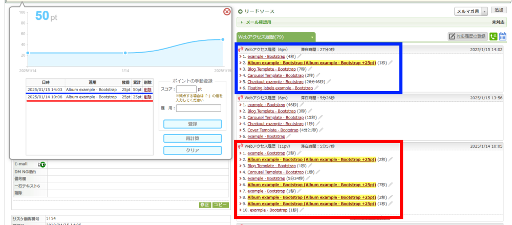 - 2025/1/14 10:05 ではコンバージョンページへ複数回アクセスがありますが、25ptのみ加算