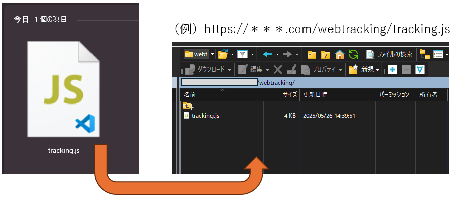 - ダウンロードした tracking.js を解析したいサイト(解析対象サイト)のサーバーへアップロードしてください。
