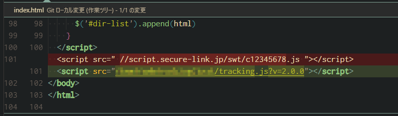 - 既存のトラッキングコードを、新たにアップロードした tracking.js に書き換えます。
