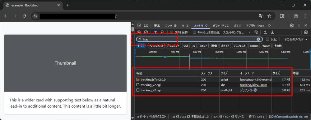 - tracking.js を埋め込んだページをブラウザで開きます。