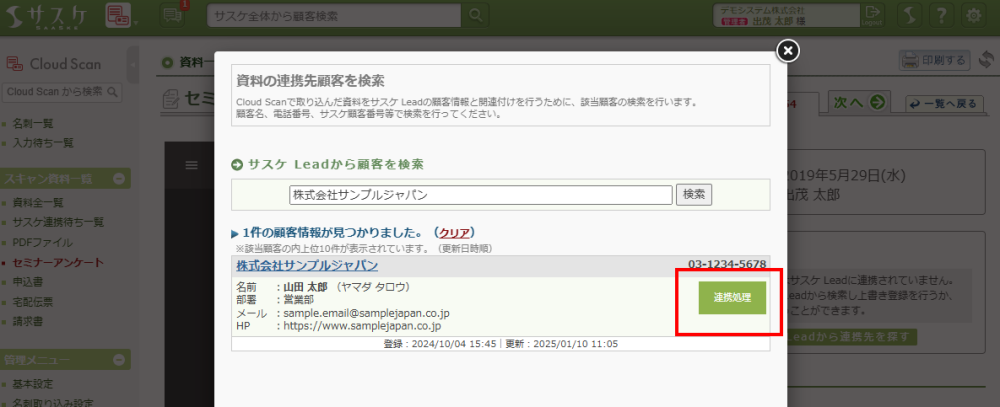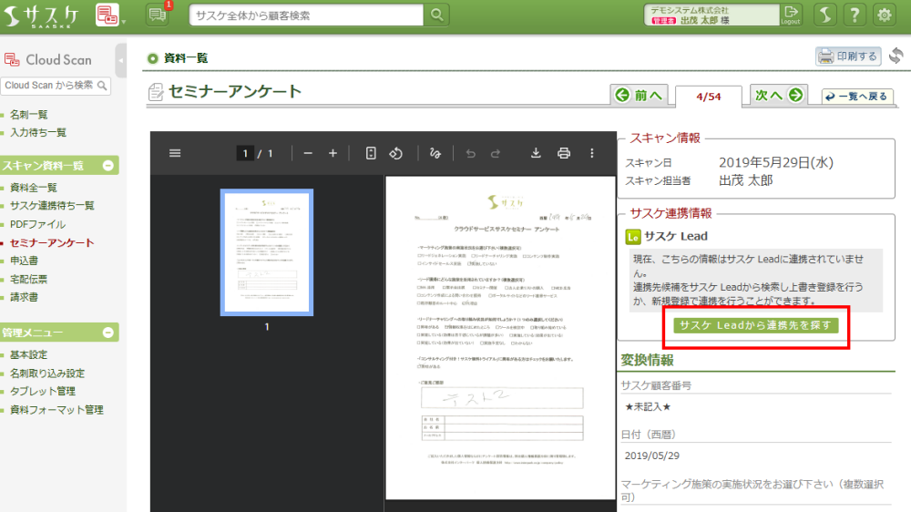 Cloud Scanでは、自動的にテレアポ職人やLeadにアンケートなどの情報(スキャン資料)が取り込まれる仕組みがあります。しかしながら、下記の理由で登録されずに「未連携」(サスケ連携待ち)になるケースがございます。